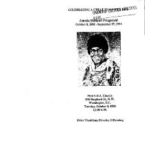 This is the funeral program of Amelia Holland Fitzgerald who was born on October 8, 1901 and died on September 27, 1991. The funeral took place at First S.D.A. Church on Tuesday, October 8, 1991 at 11:00 A.M.